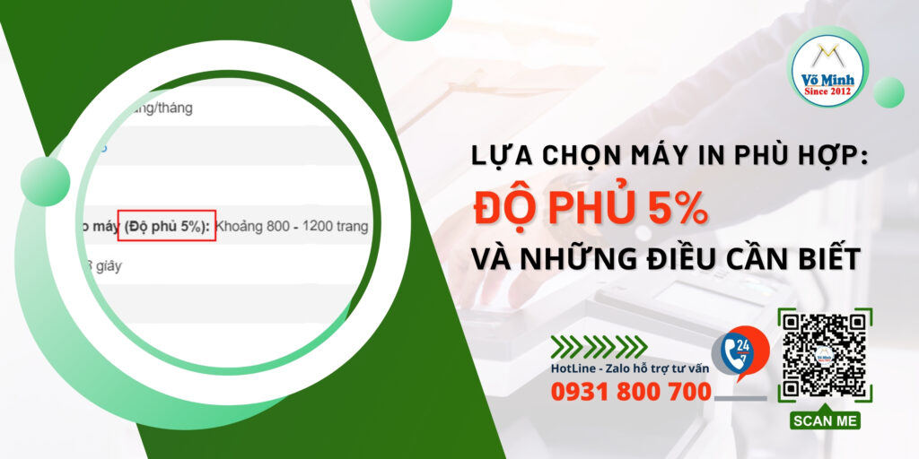 Khi chọn mua hay sử dụng máy in, bạn thường sẽ bắt gặp thông số “độ phủ 5%” trên hộp mực hoặc trong tài liệu kỹ thuật. Vậy độ phủ 5% là gì và nó có ý nghĩa như thế nào đối với máy in của bạn? Hãy cùng Võ Minh khám phá và hiểu…